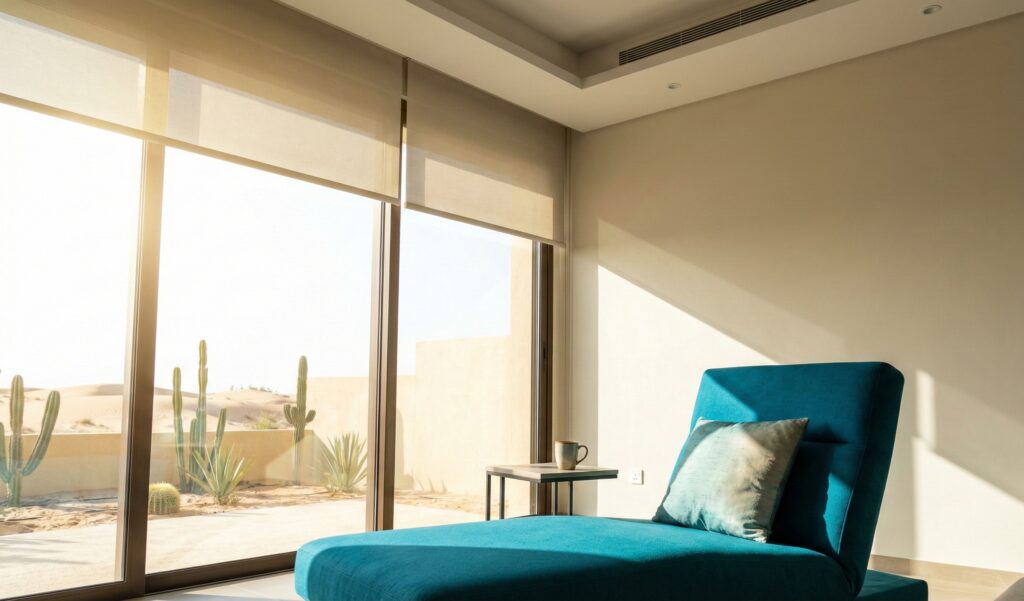 Fabrics near fenestration in high-UV zones face rapid color fading (photobleaching) and physical degradation (phototendering). Standard residential textiles often fail ASTM D4329 exposure tests within two years.